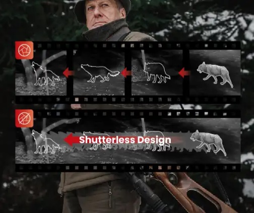 Den innovative shutterless teknologien fjerner klikkelyder og bildefrys, og sikrer kontinuerlig sanntidsvisning under jakt, selv hvis skudd går tapt eller justeringer må gjøres under kalibrering.