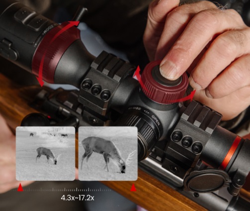 Etter omfattende felttesting er designfunksjonene evaluert og justert basert på tilbakemeldinger fra jegere, for å tilpasses brukerens vaner. Fokushjul, zoomspak og knappoppsett er laget med ergonomisk presisjon for intuitiv og enkel betjening i felten.