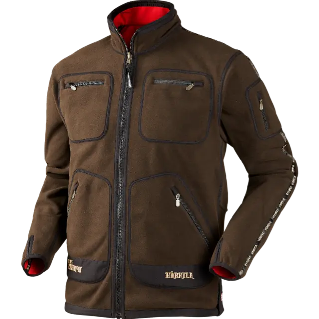 Vendbar fleecejakke med vindtett og pustende GORE WINDSTOPPER®-membran, radiolomme og fire store lommer foran. I en godt synlig brun/rød fargekombinasjon og en mer diskré brun/svart versjon.